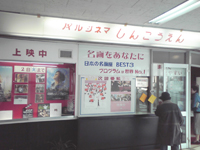 公園内にあった前身の劇場の歴史は、第二次大戦後直後にまで遡ります。当初は、映画館ではなく芝居小屋であったそうです。そして日本映画が全盛期を迎えようとしていた昭和30年代初め、寄席を経て映画館に衣替えします。「当時の正月・お盆は、お客様が一杯で場内へのドアが閉められないほどでした」そう語る小山さん。ご両親が劇場オーナーであったため、小さい頃から劇場の運営を見てきたそうです。子どもの頃、小山さんが観た映画でよく覚えているのは時代劇。「鞍馬天狗」「右門捕物帖」の嵐寛寿郎や、「一心太助」の中村錦之助、そして片岡千恵蔵、大友柳太郎・・ときら星のようにスターが銀幕を彩っていた時代でした。そして1971年に公園の全面改修で公園の下に再建され、洋画画の二番館に。 |