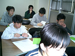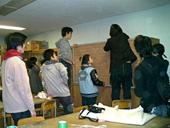 | 木村威夫美術監督の説明を聞くスクール生 |