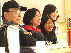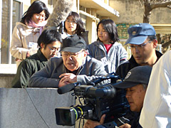 一方プロスタッフ側は、いつにも増してベテラン揃いで、瀬川昌治監督・木村威夫美術デザイナー・伊藤嘉宏カメラマン・そして井坂聡監督に監督補佐(チーフ助監督)を引き受けて頂き、大作並みの布陣となりました。出演者には、声優としても有名な千葉繁さんや俳優の辰巳琢郎さん他、たくさんの方たちに協力いただきました。その後「映広」のスタジオで編集・仕上げを行い、これらにもスクール生(参加者)は参加、2月5日の試写会を迎えます。 |